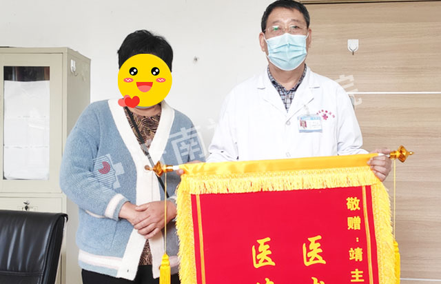 一面锦旗道出了朱大姐和其家人的心声,看着病人和家属开心的笑脸,靖主任和神康的医护人员更感欣慰。
