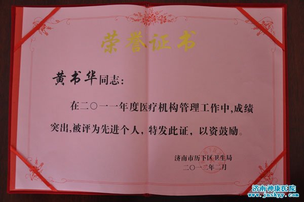 3月22日,2012年历下区卫生暨中医药工作会议召开。会议总结2011年历下区卫生工作,表彰了年度历下区卫生工作先进集体和先进个人,我院精神科主任在2011年度医疗机构管理工作中成绩突出,被评为“先进个人”。